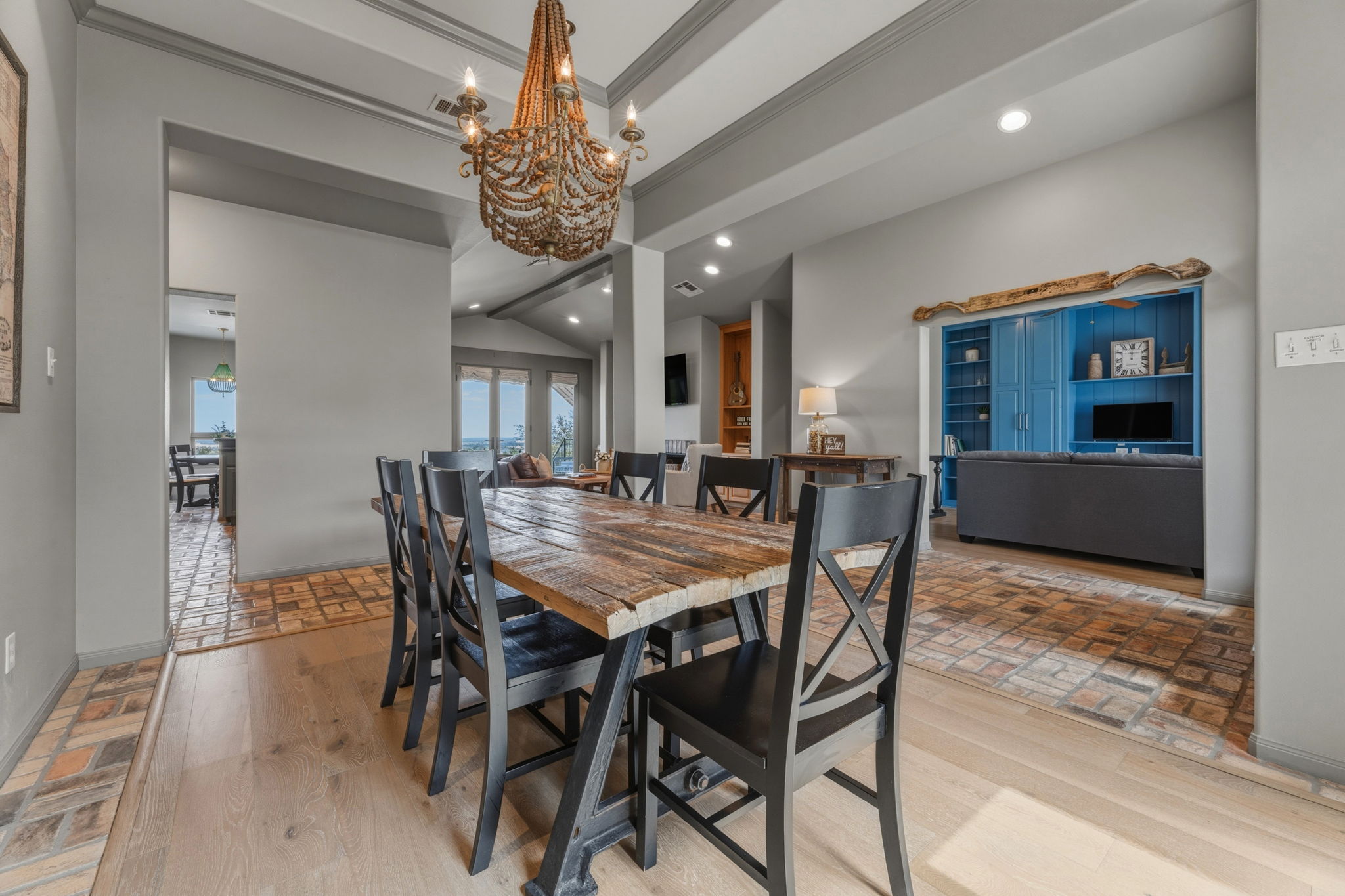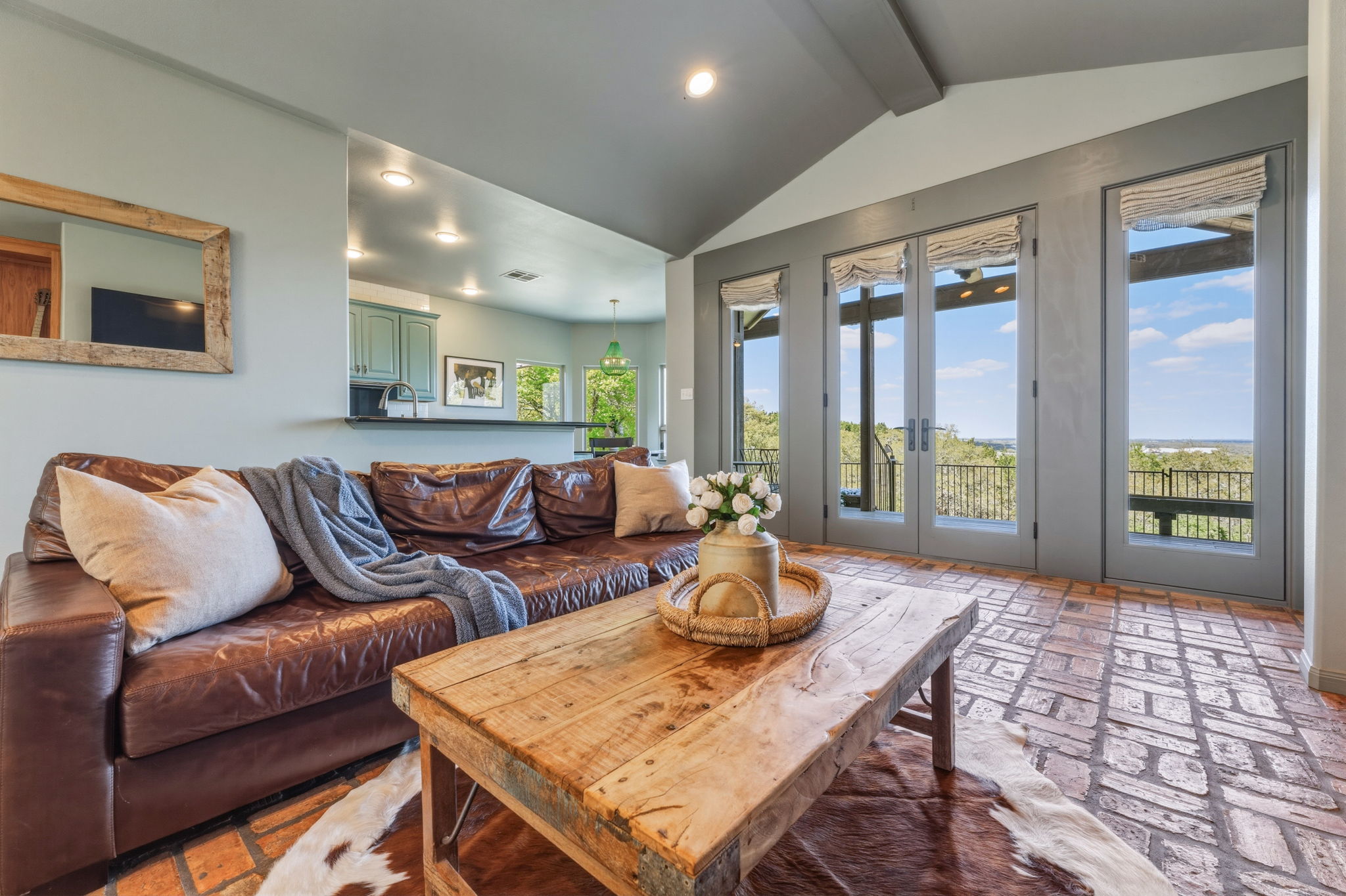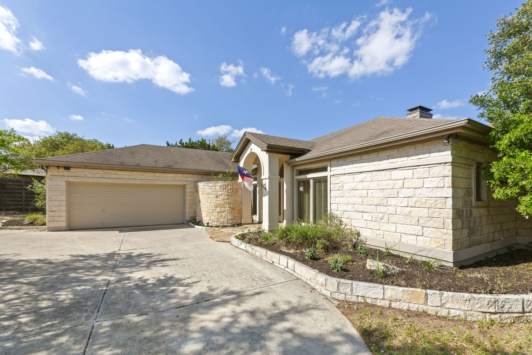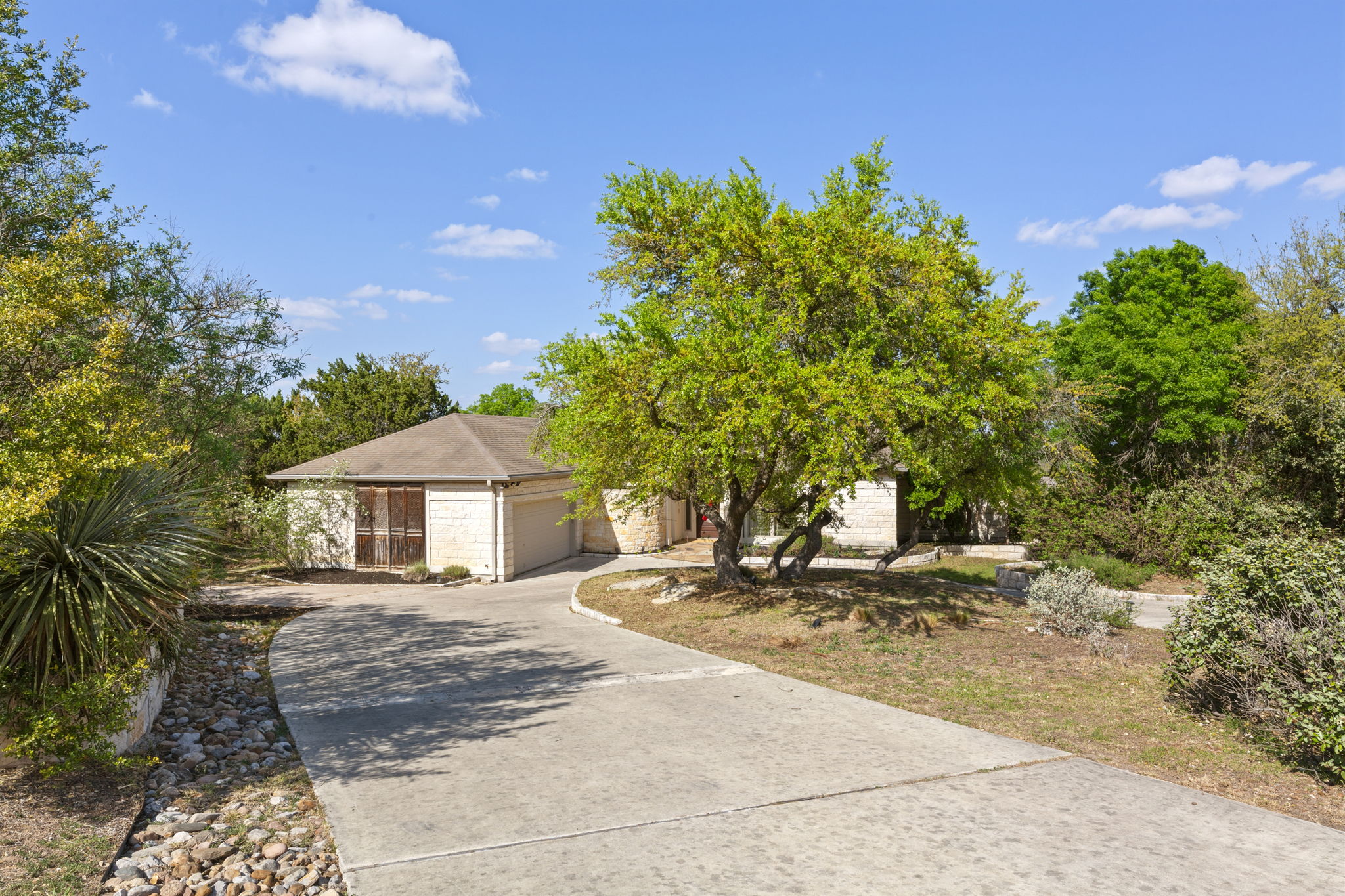 Lovely single-story home, perfectly situated on 1+ acres, overlooking the scenic Texas hill country. Elegant interior architecture includes high ceilings with recessed lighting, large columns, and archways.